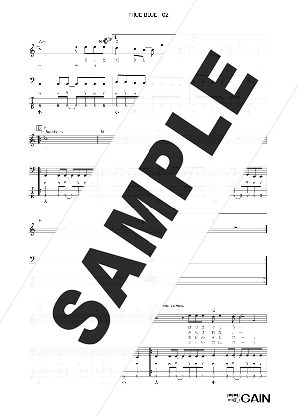 キャッチーなメロディー・ラインと軽快なリズムが印象的な、JUDY AND MARYの代表曲のひとつです。アップ・テンポでの4分音符のリズム・ワークと、開放弦のフィンガー・カットを練習します。 |