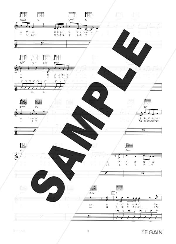 | ピック弾きアルペジオからストロークに変化するバッキングギターの楽譜を収載しています。このまま弾語りレパートリーとして完成させましょう。演奏+解説動画はYouTubeにて公開中です | ||