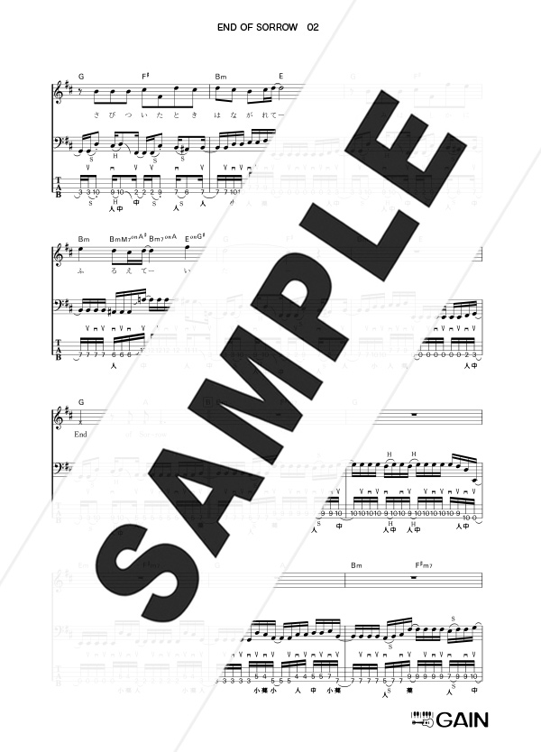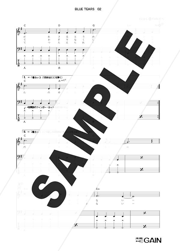 X JAPAN 1995年のバラード・ナンバー。オリジナルはかなり長いので、短くアレンジしています。ピッキング方法と、弦の押さえ方、音を止めるテクニックなど、どれもごく基本的な弾き方を練習します。 |