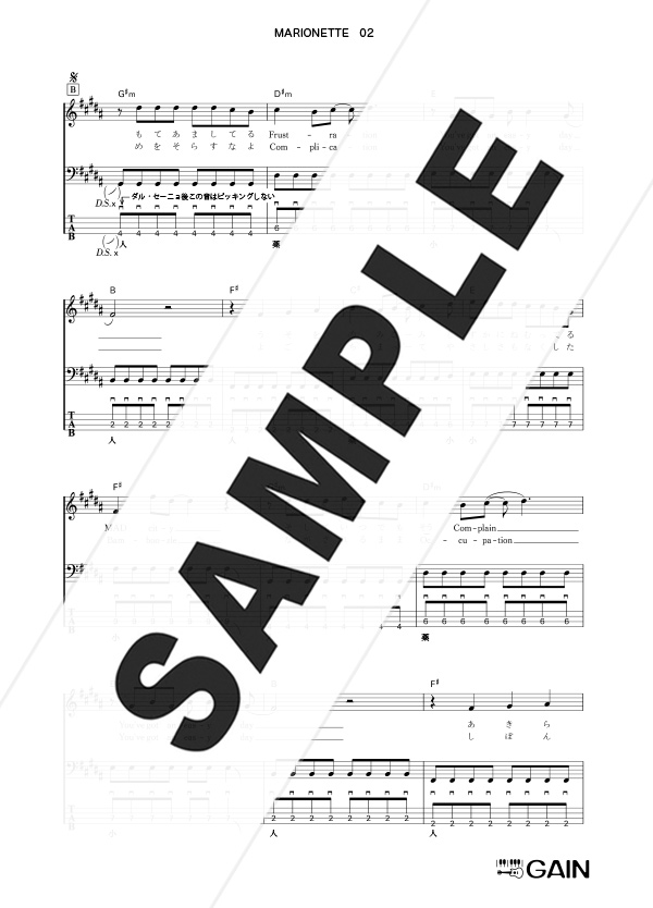 LUNA SEAの代表的なナンバー。アップ・テンポのリズムに乗せて、オルタネイト・ピッキングでのシンコペーション・リズムを活用したベース・パターンを練習します。 |